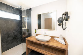 Salle de bain équipée avec douche à large pommeau ou douche à l’italienne